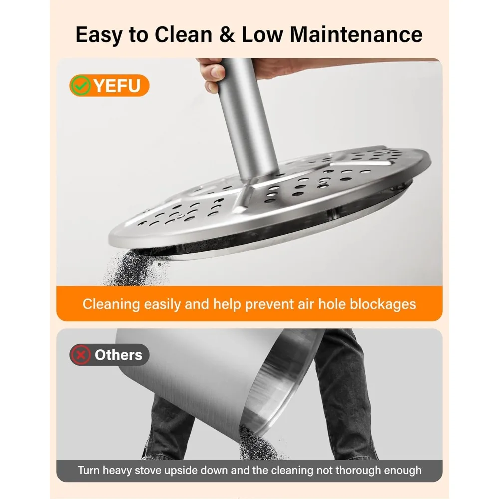 The removable ash pan ensures easy cleanup after every use.