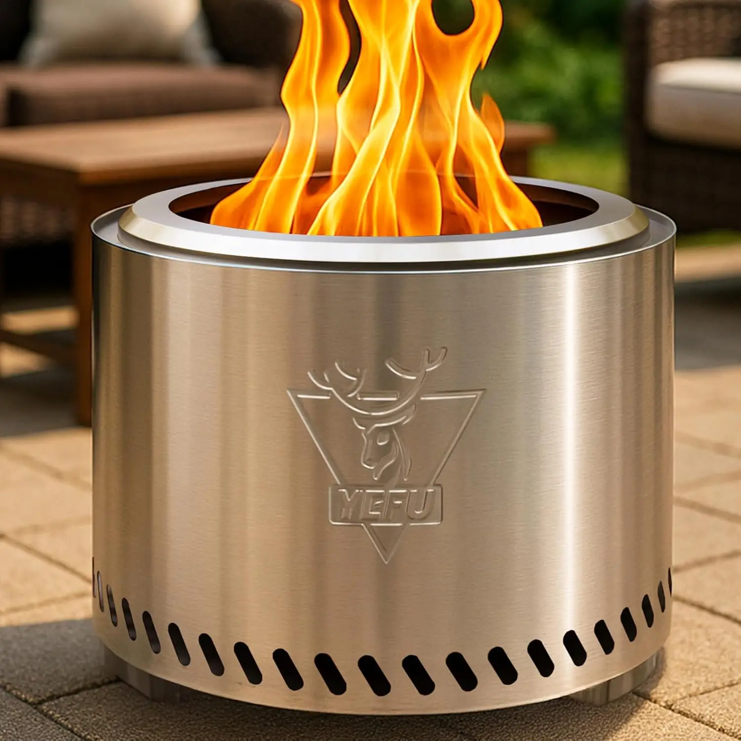 This 19-inch smokeless fire pit delivers clean, efficient burning for a more enjoyable outdoor experience.