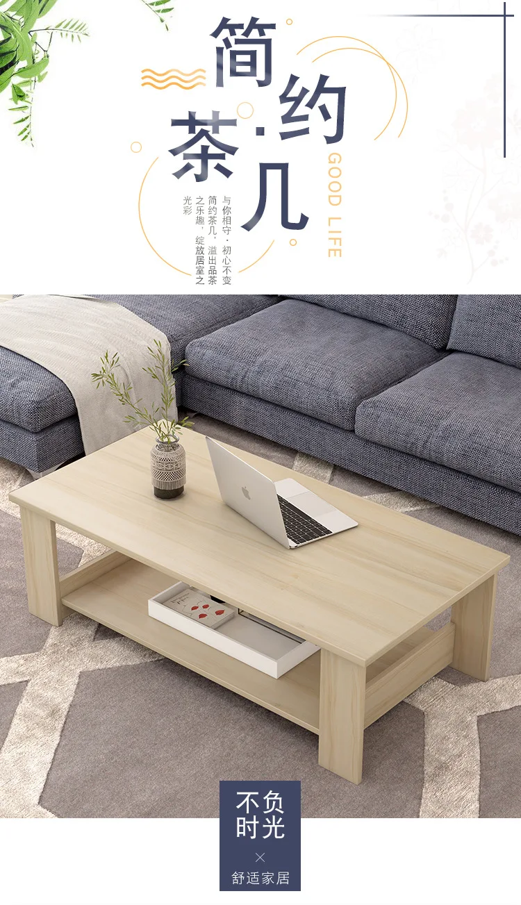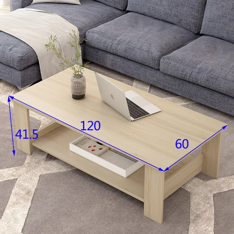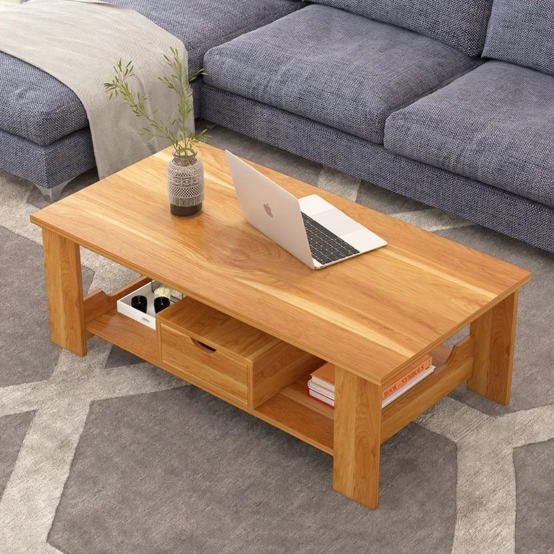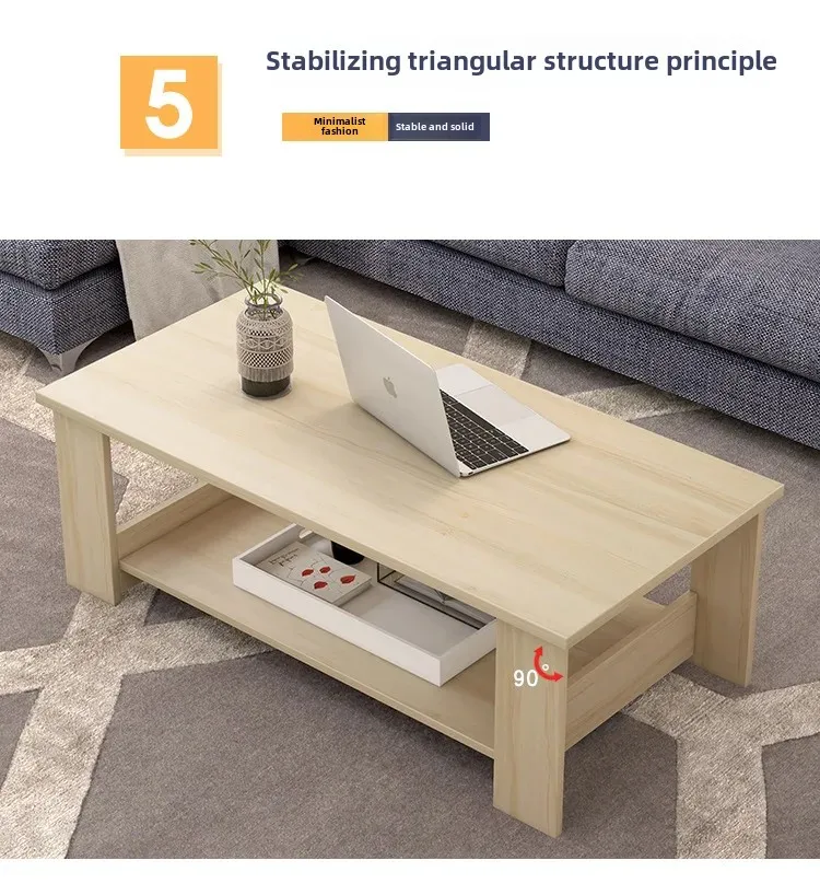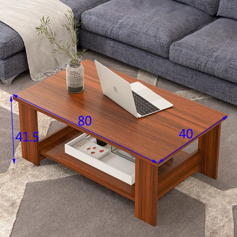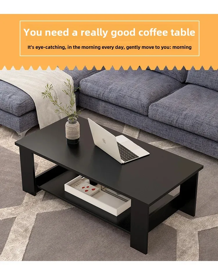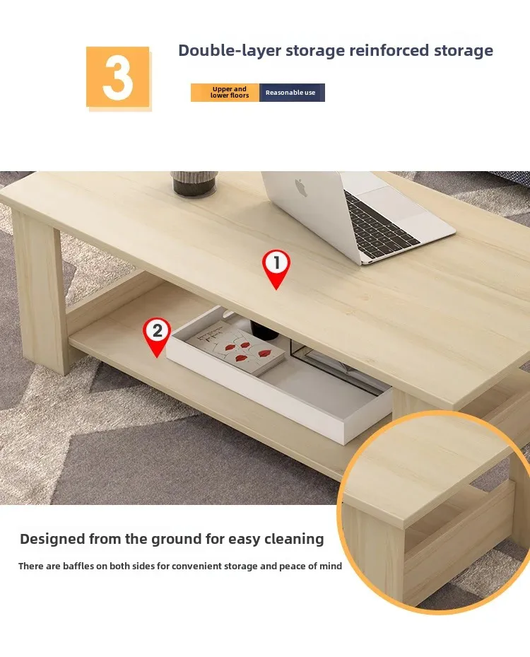 This simple double-layer wooden coffee table combines modern design with practical storage.