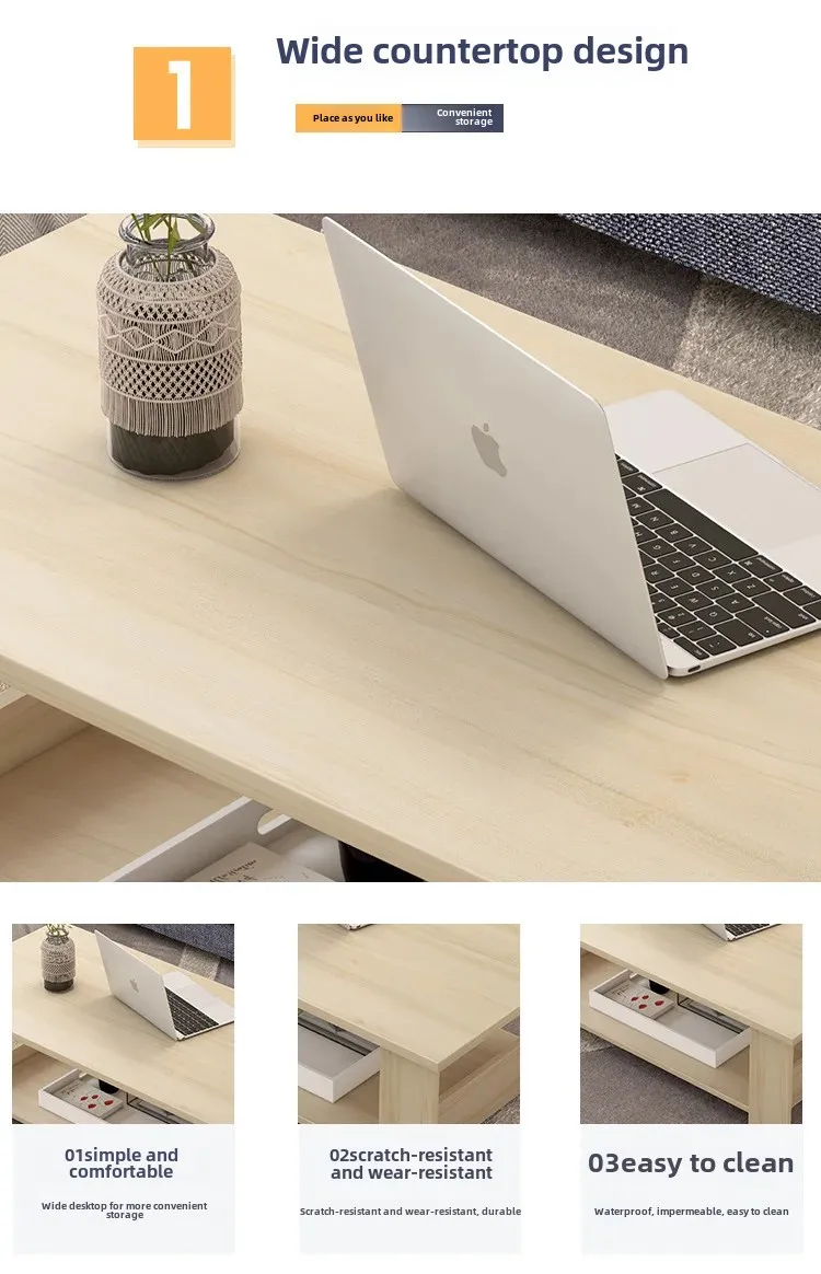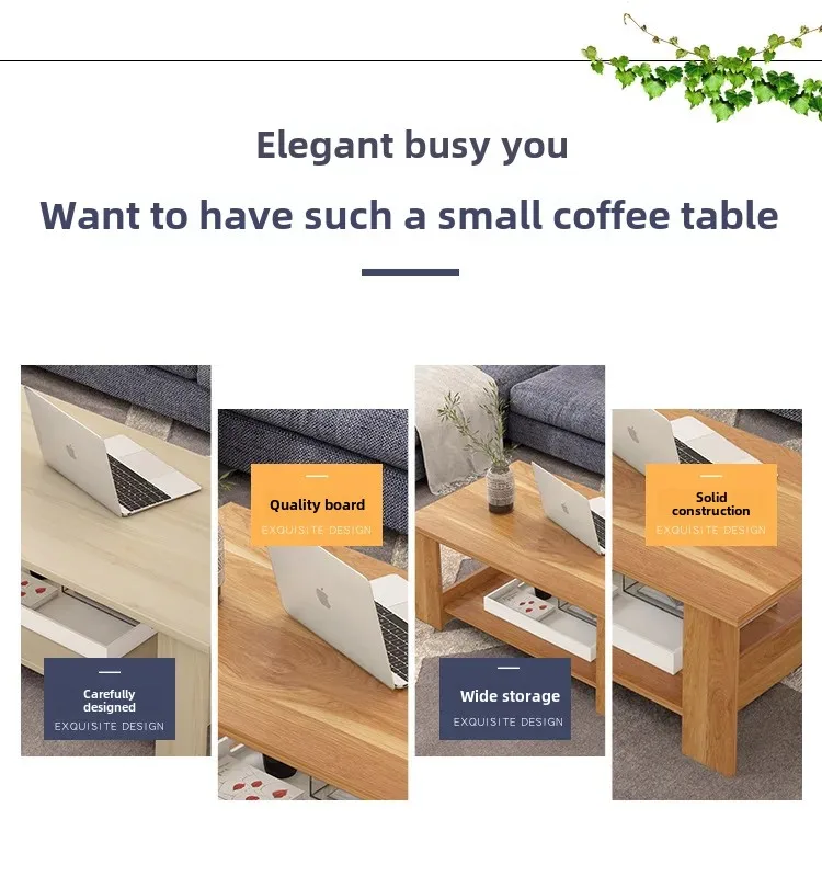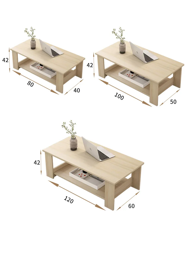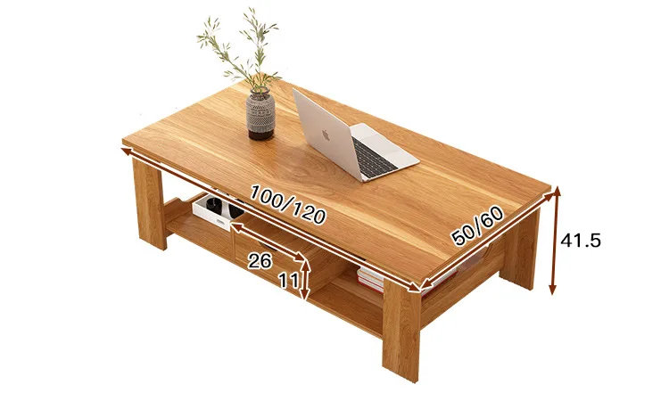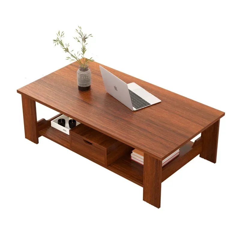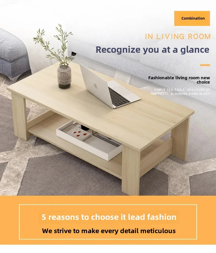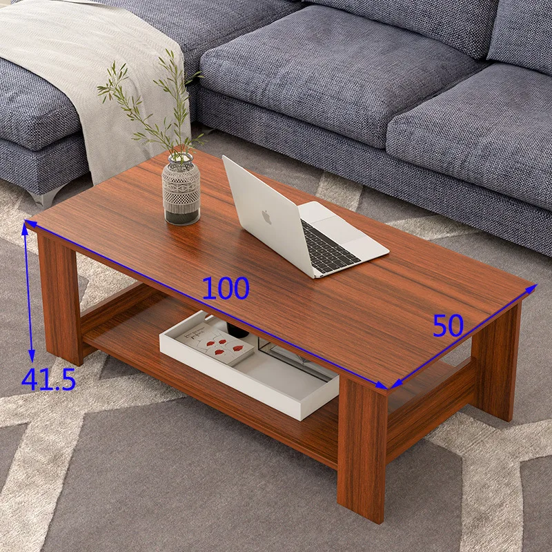 This simple double-layer wooden coffee table combines modern design with practical storage.