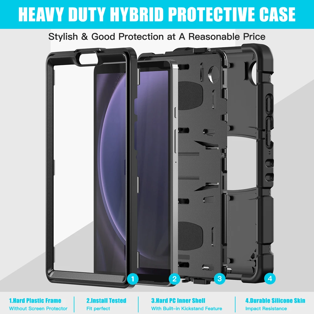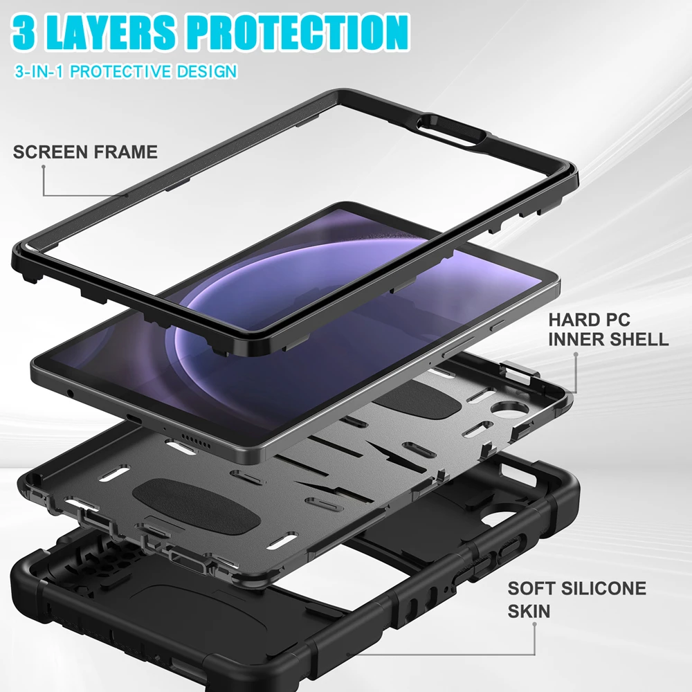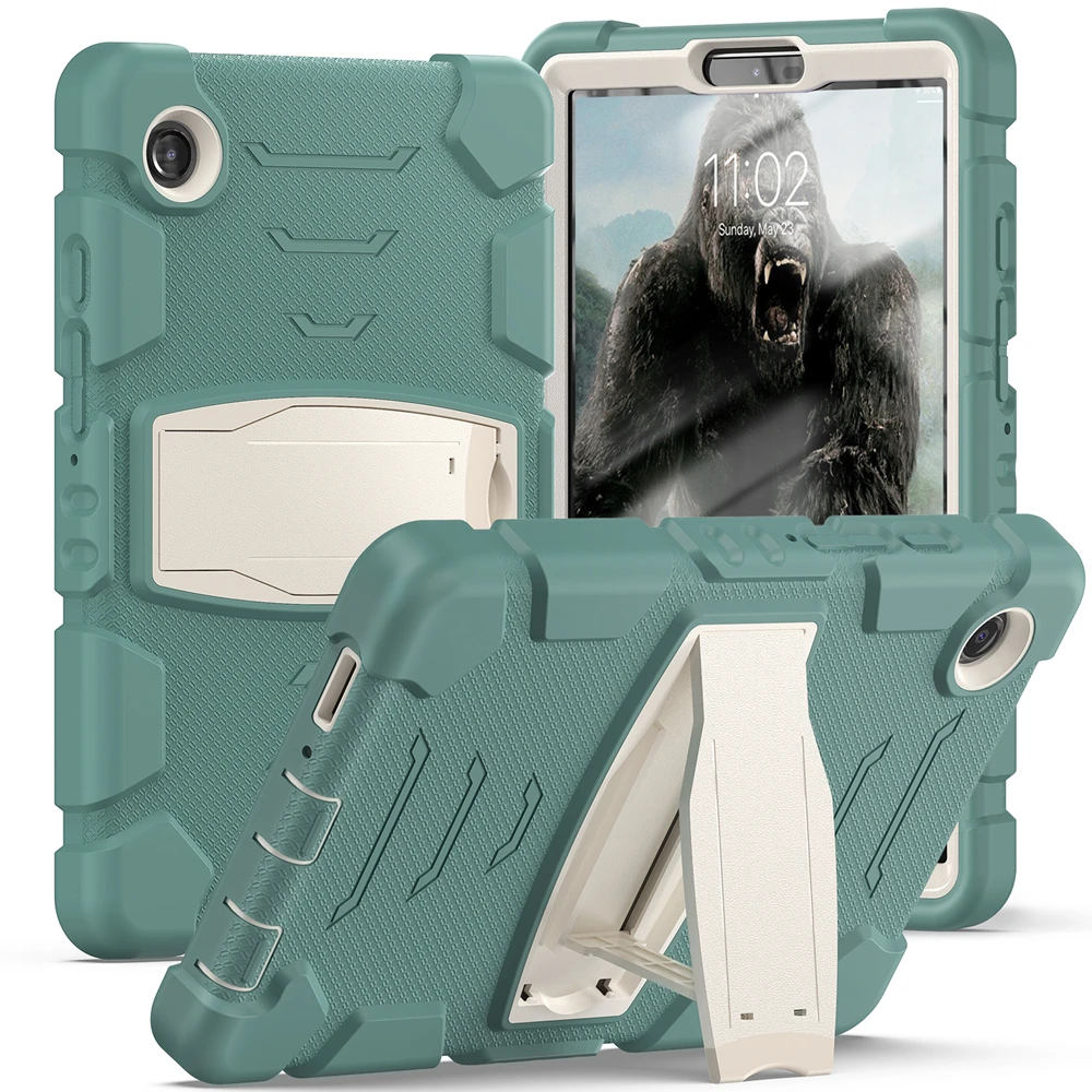 Protect your device with the Heavy Duty Rugged Armor Silicone Case designed for multiple Samsung Galaxy Tab models. Crafted from premium shock-absorbing silicone, this case offers superior drop protection against bumps and scratches. Its three-layer design ensures durability and full-body defense for everyday use. The precise cutouts allow easy access to all buttons, ports, and cameras without removing the case. Built-in kickstand support makes it perfect for watching videos, video calls, or working hands-free. The textured anti-slip surface provides a firm and comfortable grip, even for kids. Ideal for home, school, travel, or office use, this case combines protection and practicality. Raised edges safeguard the screen and camera from accidental contact with surfaces. Available in various colors to match your personal style. Give your Samsung tablet unbeatable protection with this rugged, stylish, and functional silicone case.