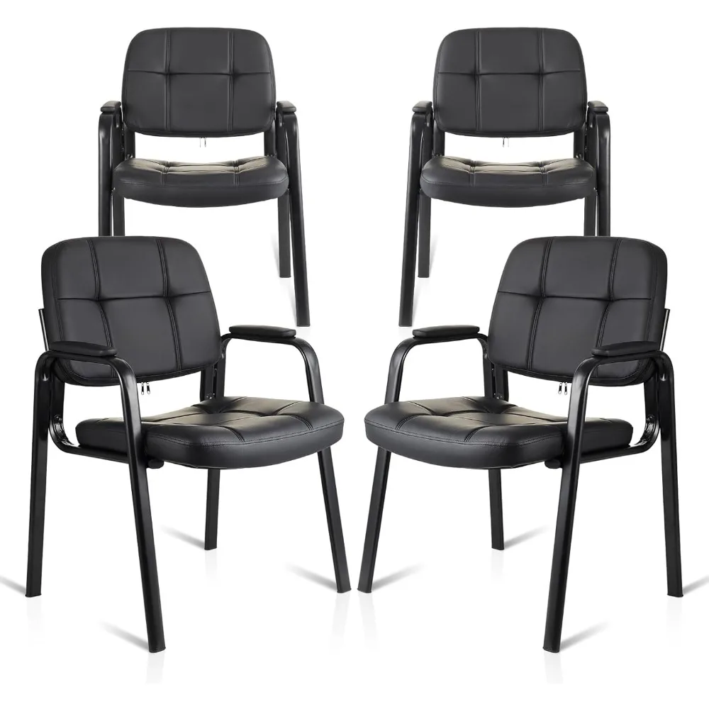Enhance your office or reception area with this 4-pack of bonded leather guest chairs, designed for professional comfort and lasting style. Each chair features padded armrests and cushioned seats that ensure your visitors feel comfortable during meetings or waiting periods. The sleek black bonded leather upholstery adds a touch of sophistication to any office décor. Built on a durable metal frame, these chairs provide stability and support for everyday use. The ergonomic design promotes proper posture, reducing fatigue even during long sessions. Perfect for reception areas, meeting rooms, or conference spaces, they offer both functionality and elegance. The scratch-resistant finish helps maintain a polished look over time. Their stackable and easy-to-assemble design saves space and ensures convenient storage when not in use. The non-slip foot pads protect floors and enhance safety. Upgrade your office seating with these comfortable and modern guest chairs, ideal for any professional setting.