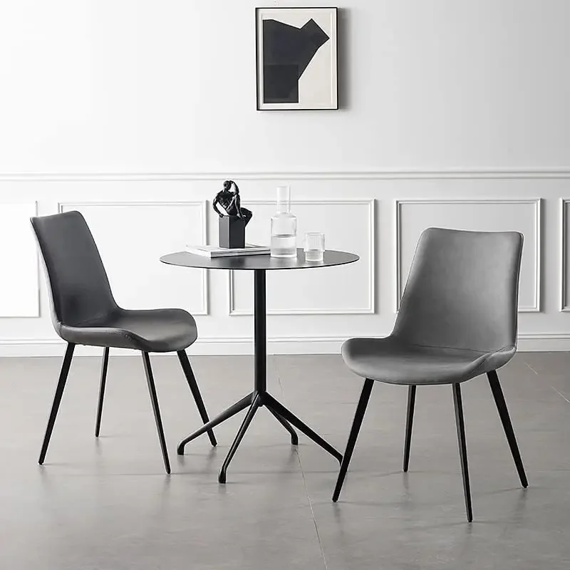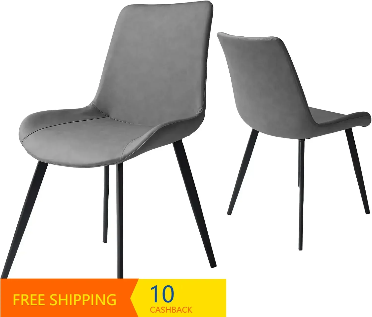 Add modern elegance to your dining space with this Dining Chairs Set of 2. These chairs feature a sleek, contemporary design that fits beautifully in kitchens, dining rooms, or cafes. The upholstered faux leather seat provides soft comfort while being easy to clean and maintain. Supported by sturdy metal legs, each chair ensures stability and long-lasting durability. The ergonomic backrest offers proper support for comfortable dining and conversation. With a smooth and minimalist silhouette, these chairs complement a wide range of table styles and interior themes. Designed for easy assembly, they come with all necessary tools and clear instructions. Ideal for both home and commercial spaces, these chairs balance comfort, function, and style. Their scratch-resistant, anti-slip leg design helps protect your floors while maintaining stability. Upgrade your dining experience with this set of modern faux leather dining chairs, the perfect blend of comfort and sophistication.