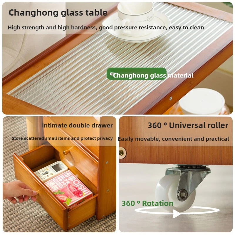The table can serve as a tea cart, coffee table, or corner organizer.